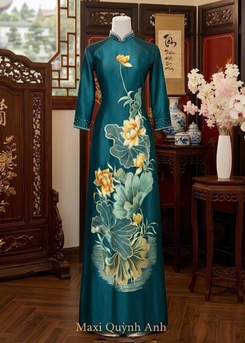 Áo Dài Sui Xanh Lá