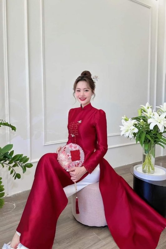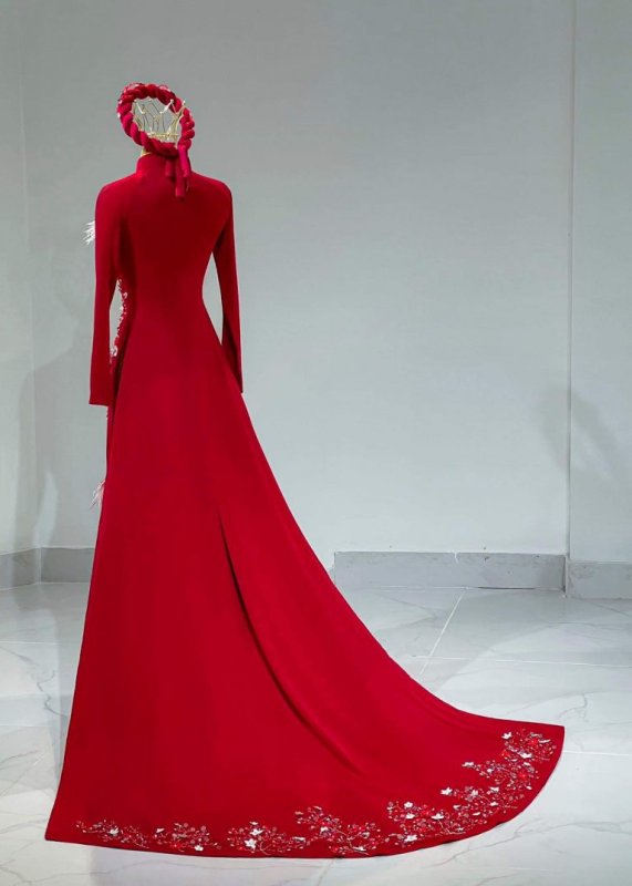 - Áo dài truyền thống: Với thiết kế cổ điển, áo dài truyền thống là lựa chọn của nhiều cô dâu muốn giữ gìn nét đẹp văn hóa dân tộc. Chiếc áo dài cưới này thường có đường cắt ôm sát cơ thể, kết hợp với các họa tiết thêu tinh xảo, tạo nên vẻ đẹp thanh thoát và dịu dàng.