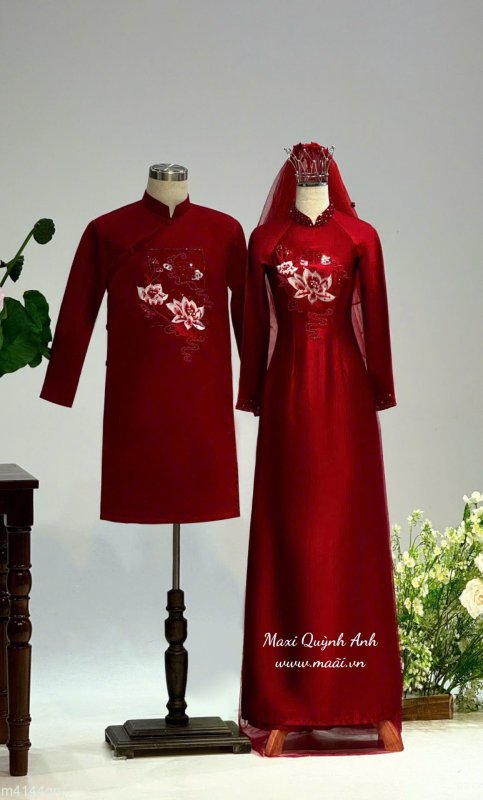 Màu đỏ từ lâu đã được xem là gam màu biểu tượng của hạnh phúc, may mắn và sung túc. Các mẫu áo dài cưới đỏ 2025 thường được thiết kế với họa tiết rồng phượng, hoa sen, thêu tay hoặc đính ngọc trai cầu kỳ, mang lại vẻ đẹp trang trọng và thiêng liêng cho lễ cưới.
