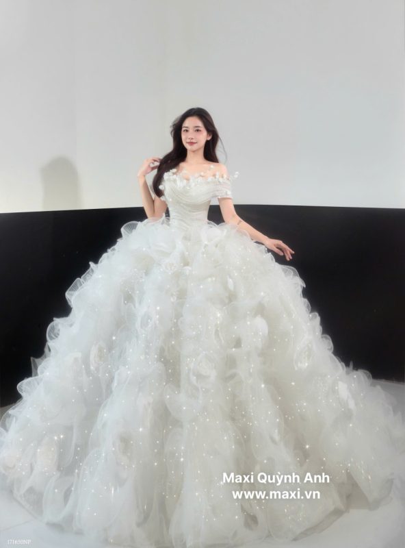 Không phải váy cưới nào mặc đẹp cũng lên ảnh đẹp. Tại shop Maxi Quỳnh Anh, mỗi thiết kế váy đều được lựa chọn kỹ về phom dáng, chất liệu và họa tiết bắt sáng:
