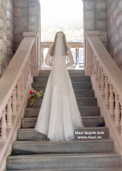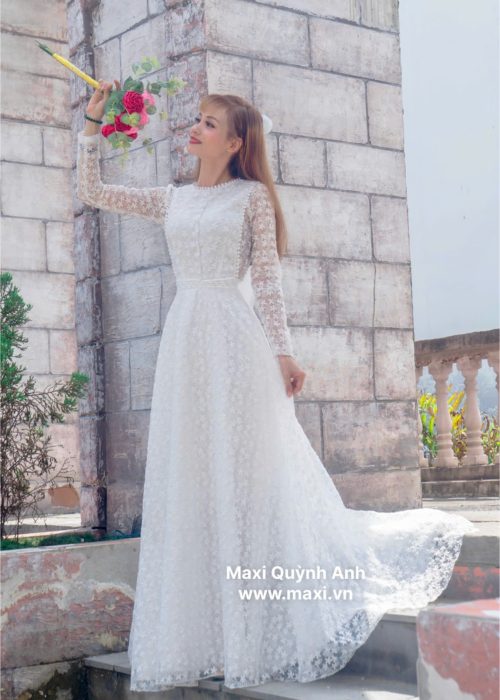 Đầm Dạ Hội Tay Dài Phối Ren Cao Cấp
