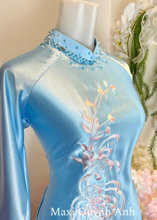 Thứ hai, áo dài Bà Sụi thường được làm từ những loại vải cao cấp như lụa, satin, vải nhung, mang đến sự sang trọng và quý phái. Màu sắc thường tinh tế và trang nhã, thích hợp cho nhiều dịp khác nhau từ lễ cưới đến những buổi tiệc sang trọng.