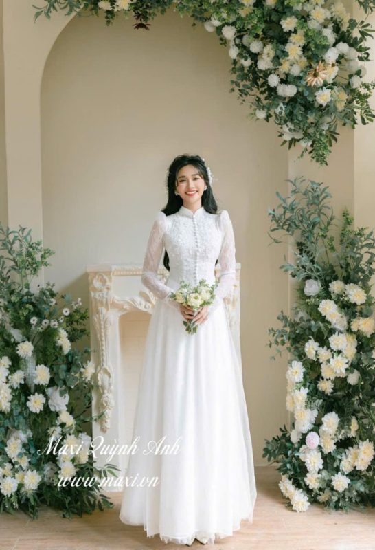 Những chiếc áo dài cưới với phần tay bồng đang trở thành xu hướng được nhiều cô dâu trẻ yêu thích. Tay bồng có thể là tay ngắn, tay lỡ hoặc tay dài, tạo nên vẻ ngoài vừa cổ điển vừa hiện đại. Kiểu tay áo này còn giúp che đi bắp tay không mấy thon gọn, mang lại sự tự tin cho cô dâu.