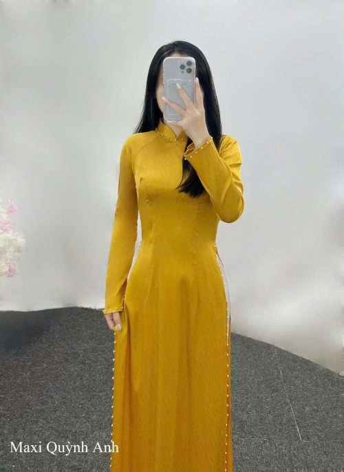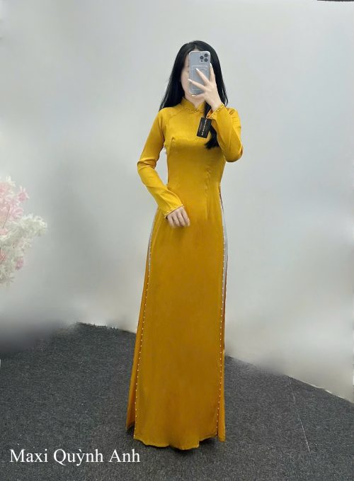 Tỏa sáng rực rỡ và sang trọng, Áo Dài Hoàng Kim mang sắc vàng óng ánh đầy quyền quý, tượng trưng cho sự thịnh vượng và may mắn. Thiết kế truyền thống ôm dáng giúp tôn lên đường cong mềm mại, đồng thời vẫn giữ được vẻ kín đáo, duyên dáng đặc trưng của tà áo dài Việt. Chất liệu lụa cao cấp mang đến cảm giác thoải mái, nhẹ nhàng, dễ dàng di chuyển mà vẫn toát lên sự thanh lịch.