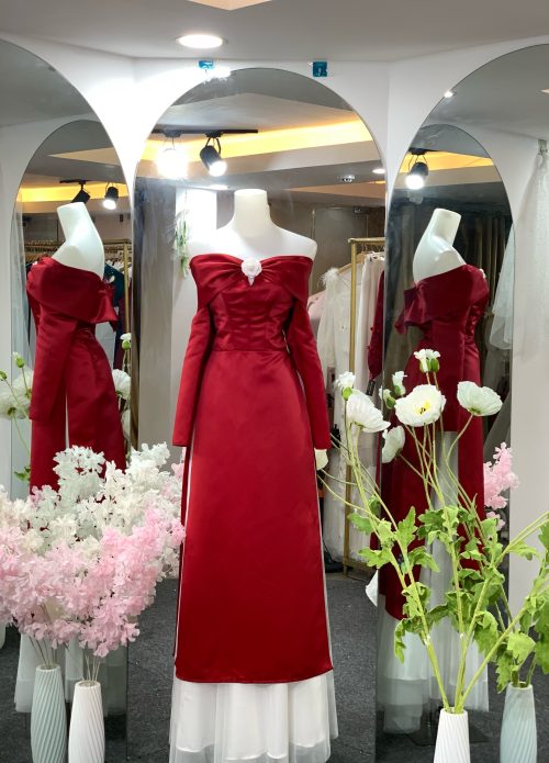 Áo Dài Cách Tân Trễ Vai Phối Tay Dài