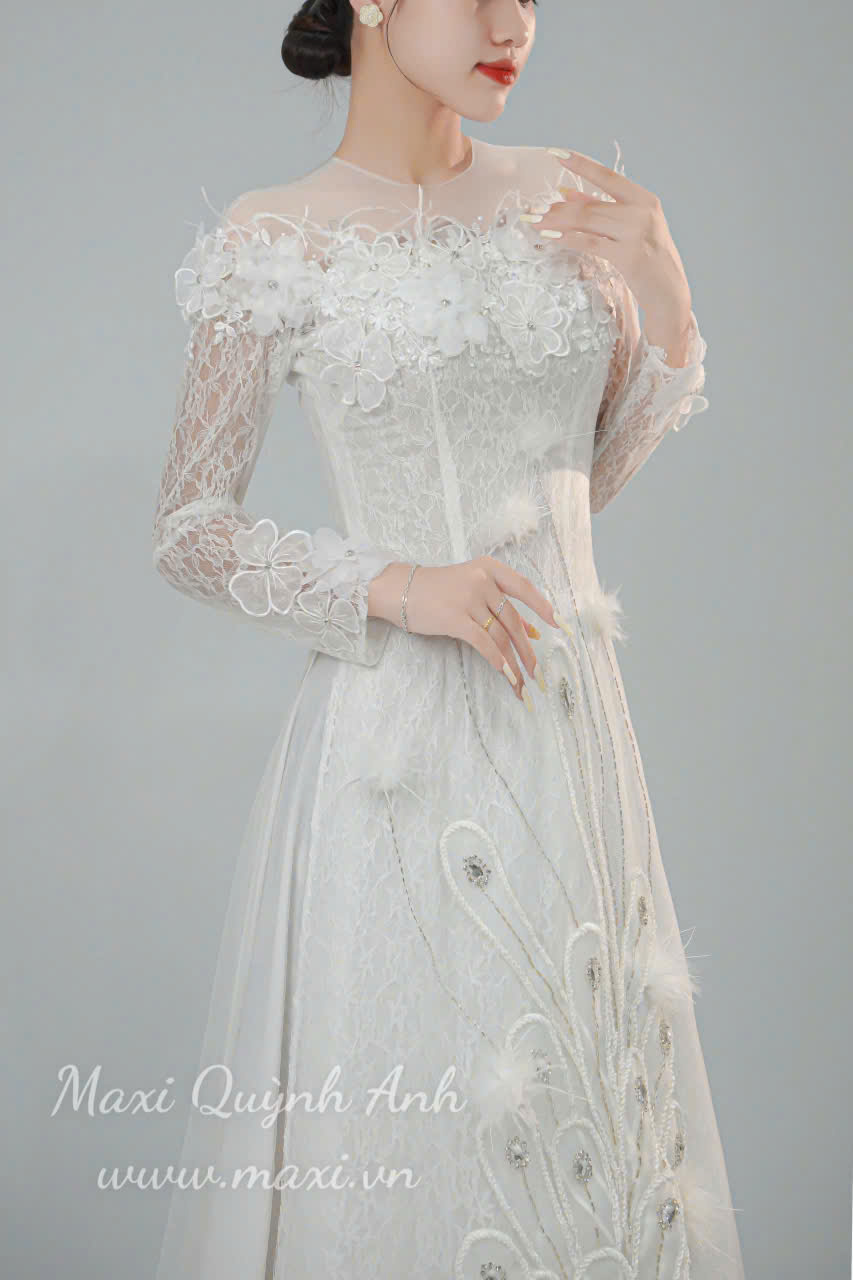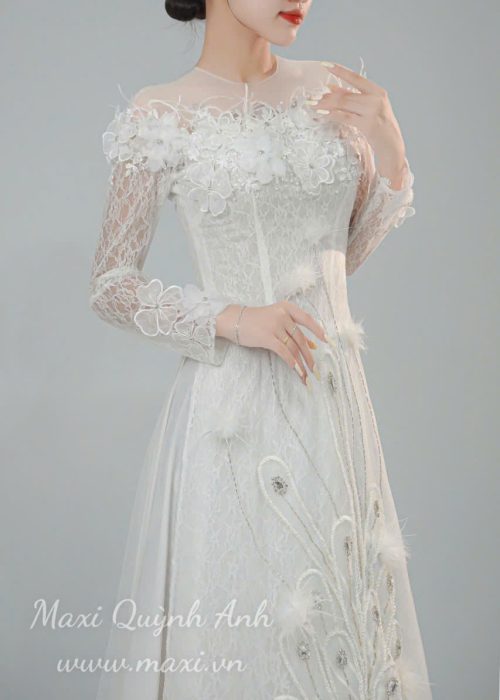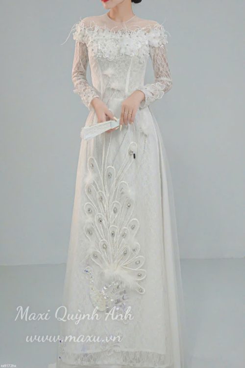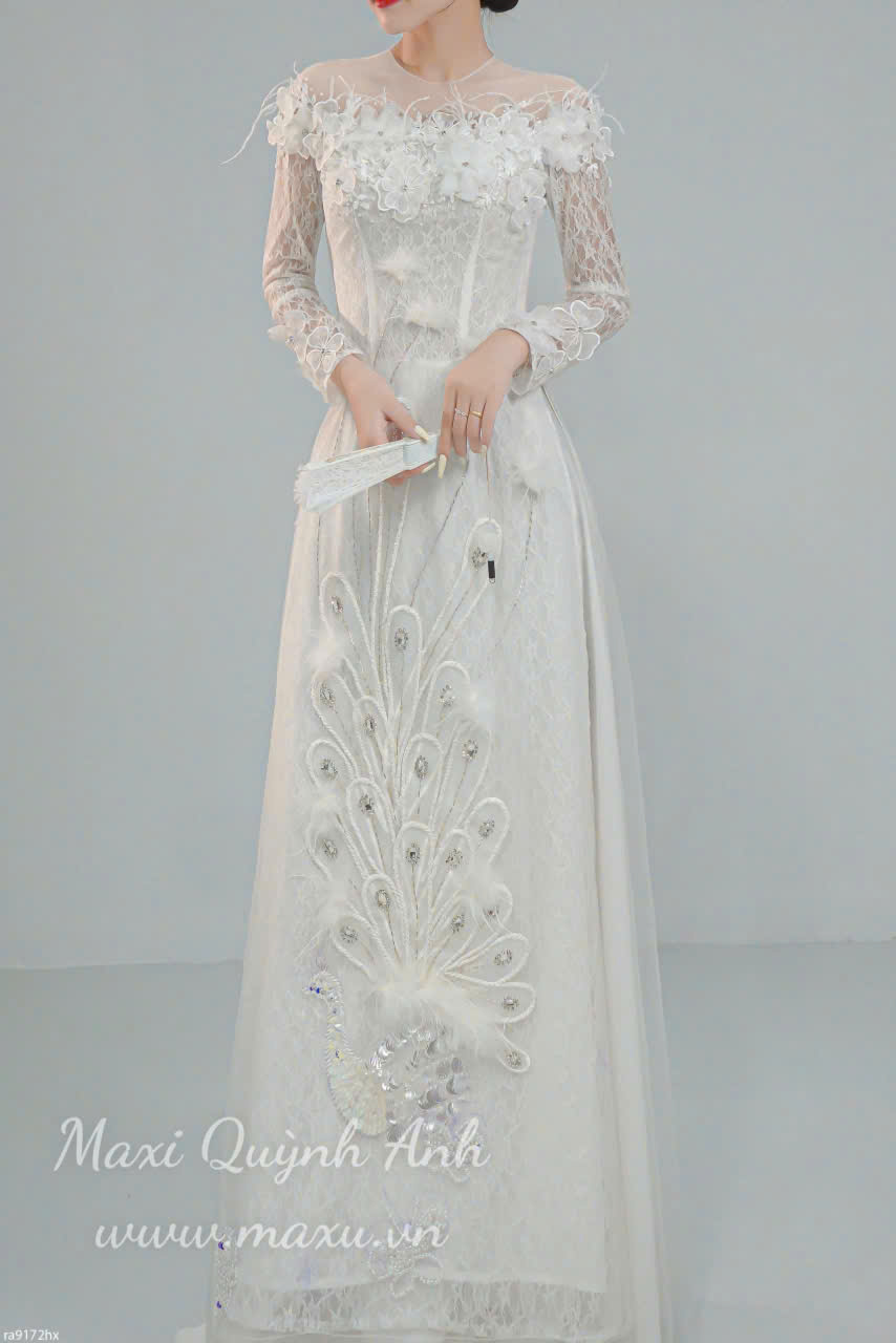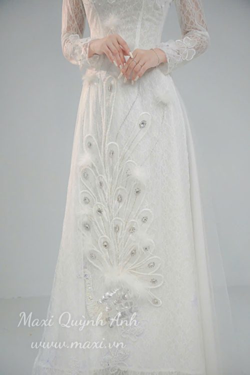 Lấy cảm hứng từ vẻ đẹp kiêu sa, quyền quý của chim công, Maxi Quỳnh Anh trân trọng giới thiệu siêu phẩm áo dài cưới “Khổng Tước” – một tuyệt tác nghệ thuật dành riêng cho nàng dâu trong ngày trọng đại. Thiết kế là biểu tượng cho sự viên mãn, may mắn và vẻ đẹp vĩnh cửu.
