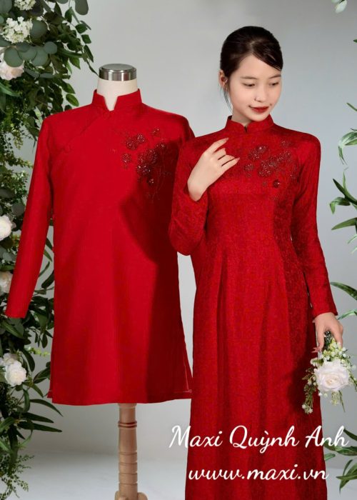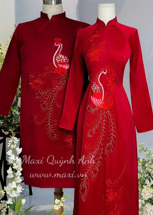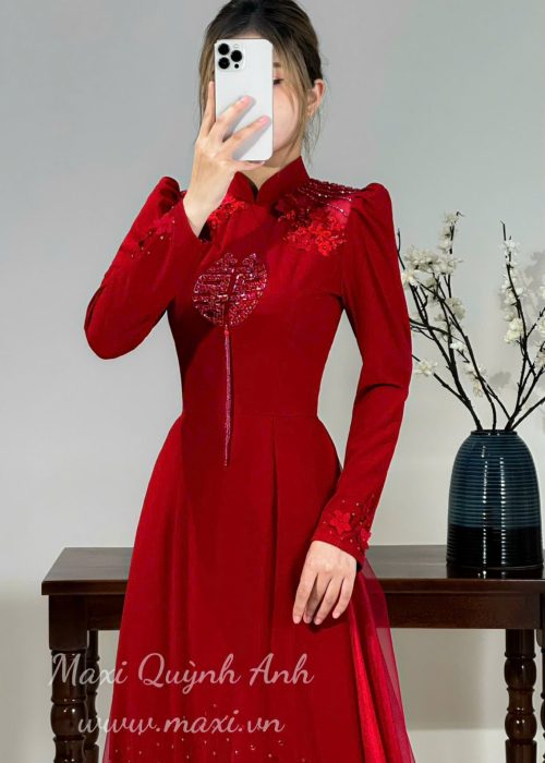 Áo Dài Cưới Đỏ Tay Dài Cao Cấp Thêu Phụng ADKD3200