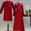 Tà áo dài cưới màu đỏ được may từ chất liệu lụa cao cấp – nhẹ nhàng, mềm mại như chính vẻ đẹp dịu dàng của người con gái Việt. Trong sắc đỏ thắm của hỷ sự, từng đường kim mũi chỉ được chăm chút tỉ mỉ, tôn lên nét thanh lịch mà không kém phần trang nghiêm. Đây không chỉ là trang phục cưới, mà là sự kế thừa của truyền thống, là hơi thở của văn hóa Việt được truyền tải qua từng sợi tơ óng mượt