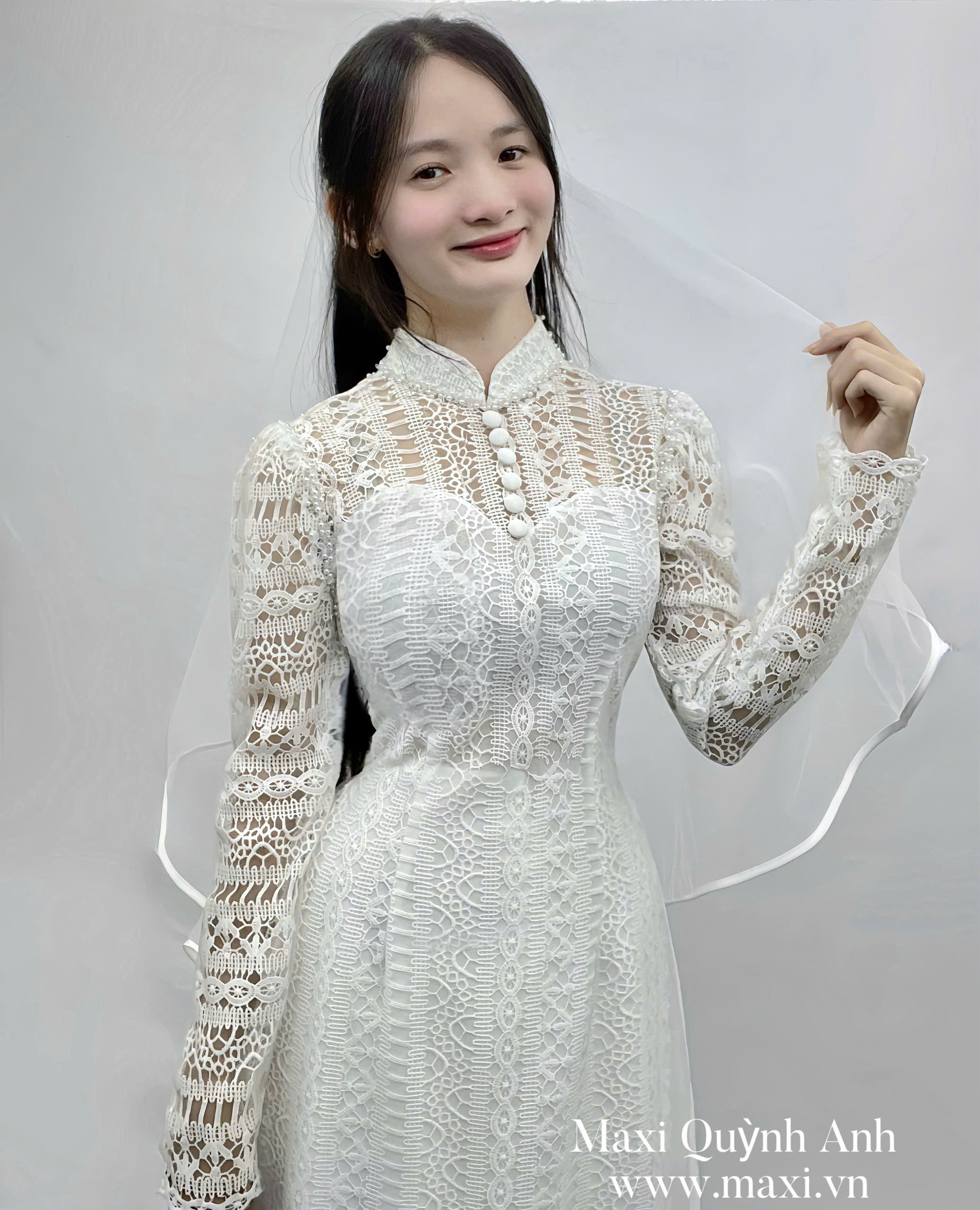 Áo Dài Cưới Ren Tuyết Ngọc Kiều Sa