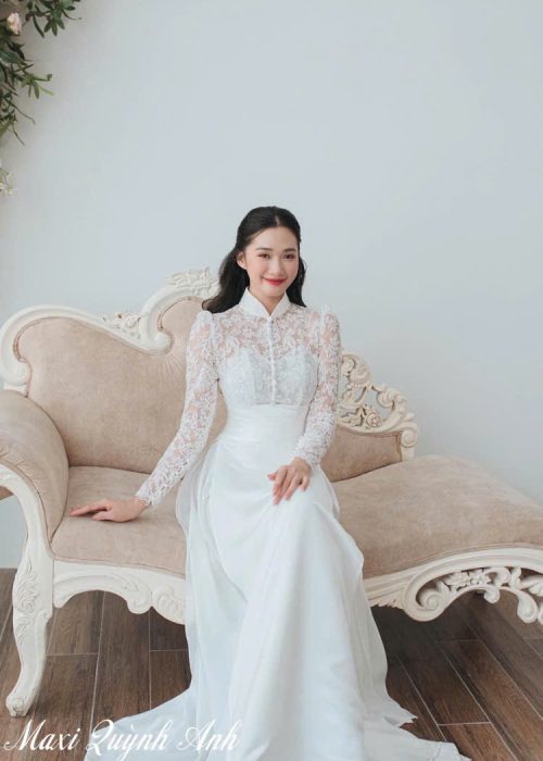Áo Dài Cưới Ren Phối Tafta Thanh Lịch