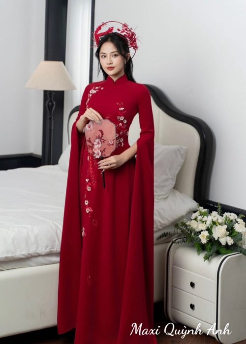 💖 [ÁO DÀI ĐỎ TAY DÀI – NGHỆ THUẬT THÊU CÔNG TINH XẢO] 💖