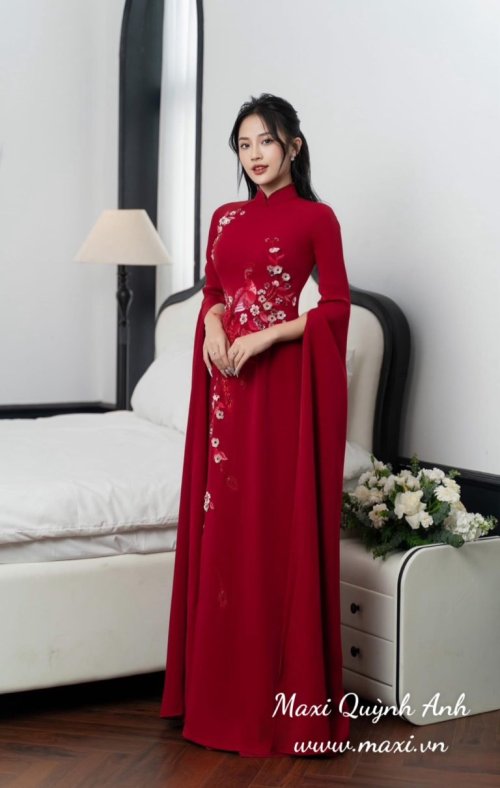 💖 [ÁO DÀI ĐỎ TAY DÀI – NGHỆ THUẬT THÊU CÔNG TINH XẢO] 💖
