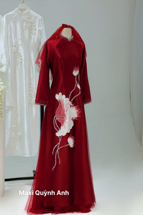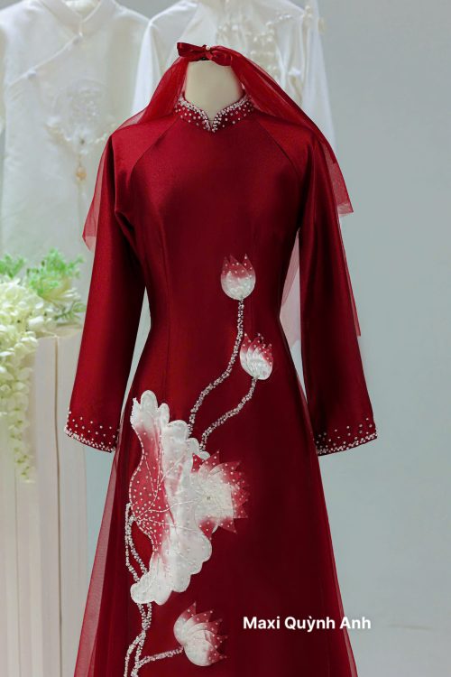 Chiếc áo dài cưới đỏ được thiết kế tinh tế với form dáng truyền thống kết hợp hiện đại, tôn trọn vẻ đẹp thanh lịch và quyến rũ của cô dâu. Chất liệu vải cao cấp mềm mịn, rủ dáng tự nhiên, mang lại sự thoải mái khi mặc.