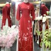 Áo Dài Cách Tân Gấm Hồng Cách Tân