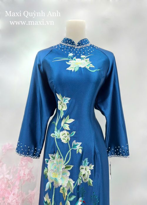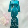 Áo Dài Sui Bảo Ngọc Sen Xanh