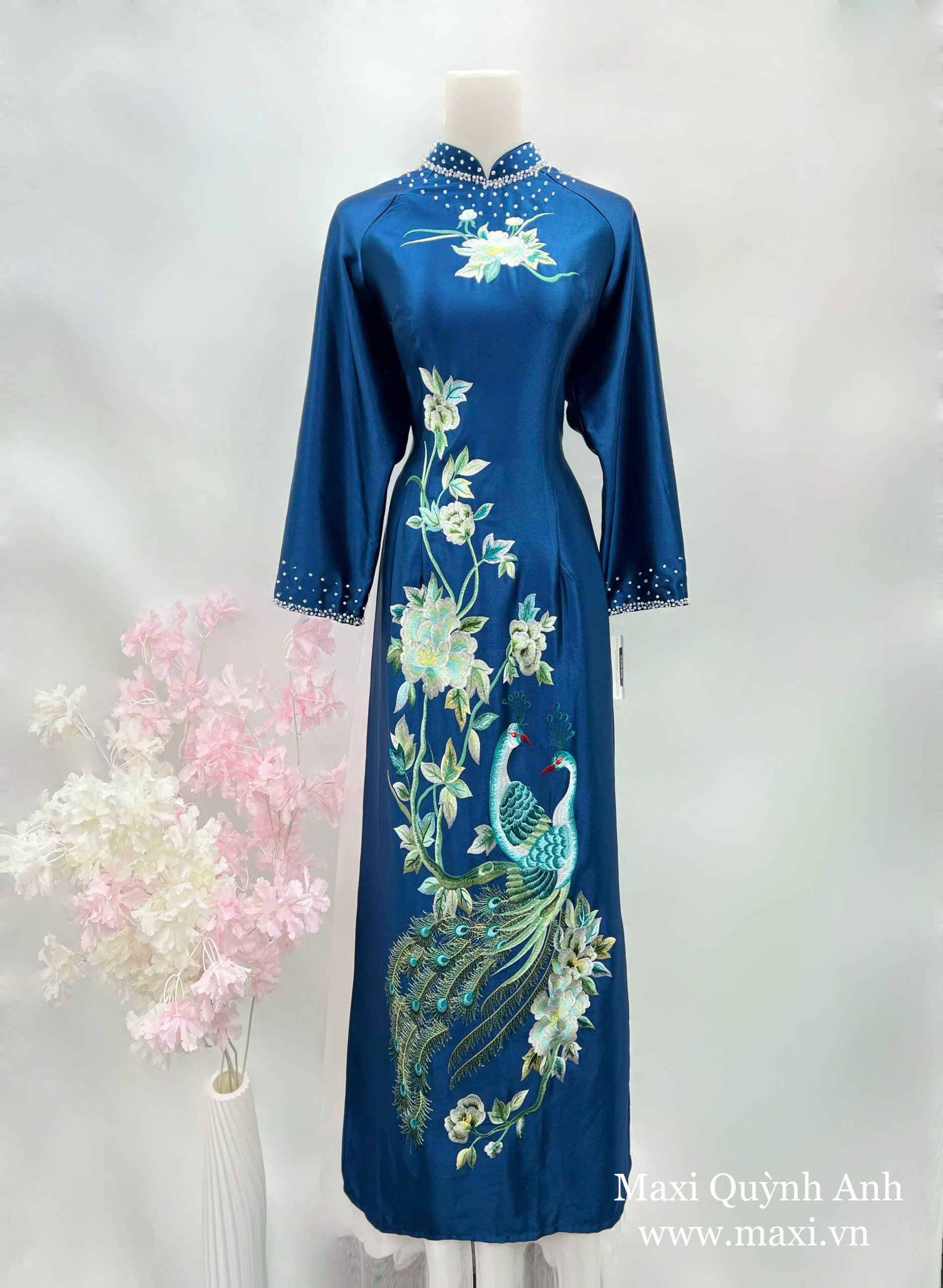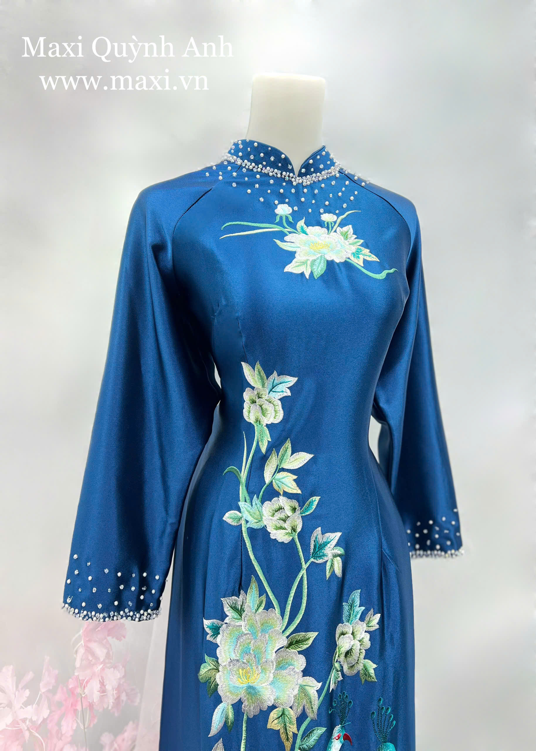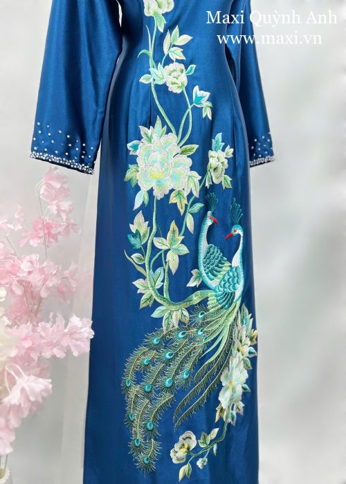 Áo Dài Sui Bảo Ngọc Sen Xanh