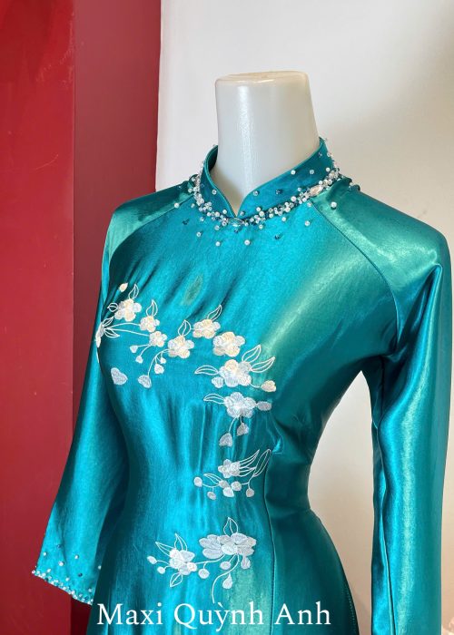 Nếu bạn đang tìm một chiếc áo dài vừa sang trọng, vừa tinh tế và mang đậm nét truyền thống Việt, thì đây chắc chắn là lựa chọn không thể bỏ qua. Hãy đến Maxi Quỳnh Anh để thử ngay mẫu áo dài xanh ngọc tuyệt đẹp này – nơi chúng tôi luôn mang đến những thiết kế chỉn chu, chất lượng và tôn vinh trọn vẹn vẻ đẹp của bạn. Maxi Quỳnh Anh hân hạnh đồng hành cùng bạn trong những khoảnh khắc rực rỡ nhất!