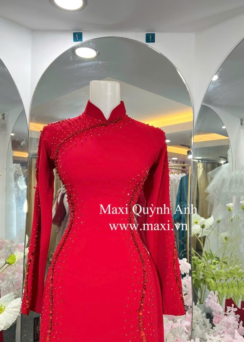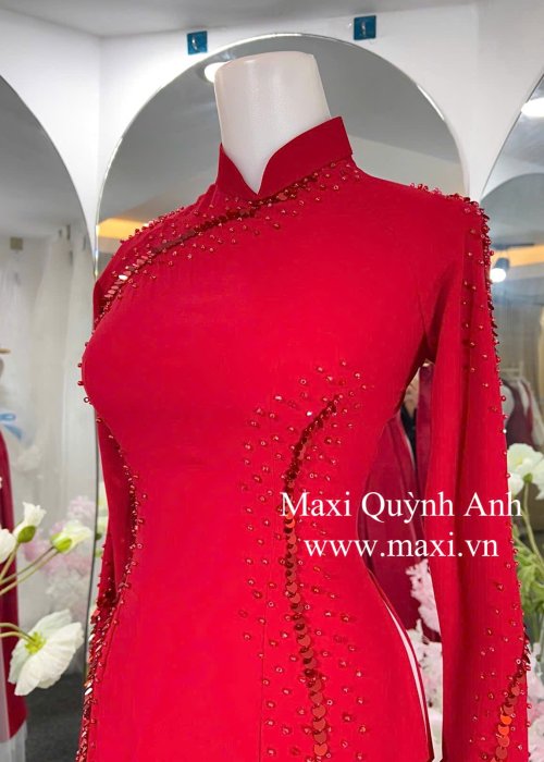 Áo Dài Sui Kim Sa Đỏ