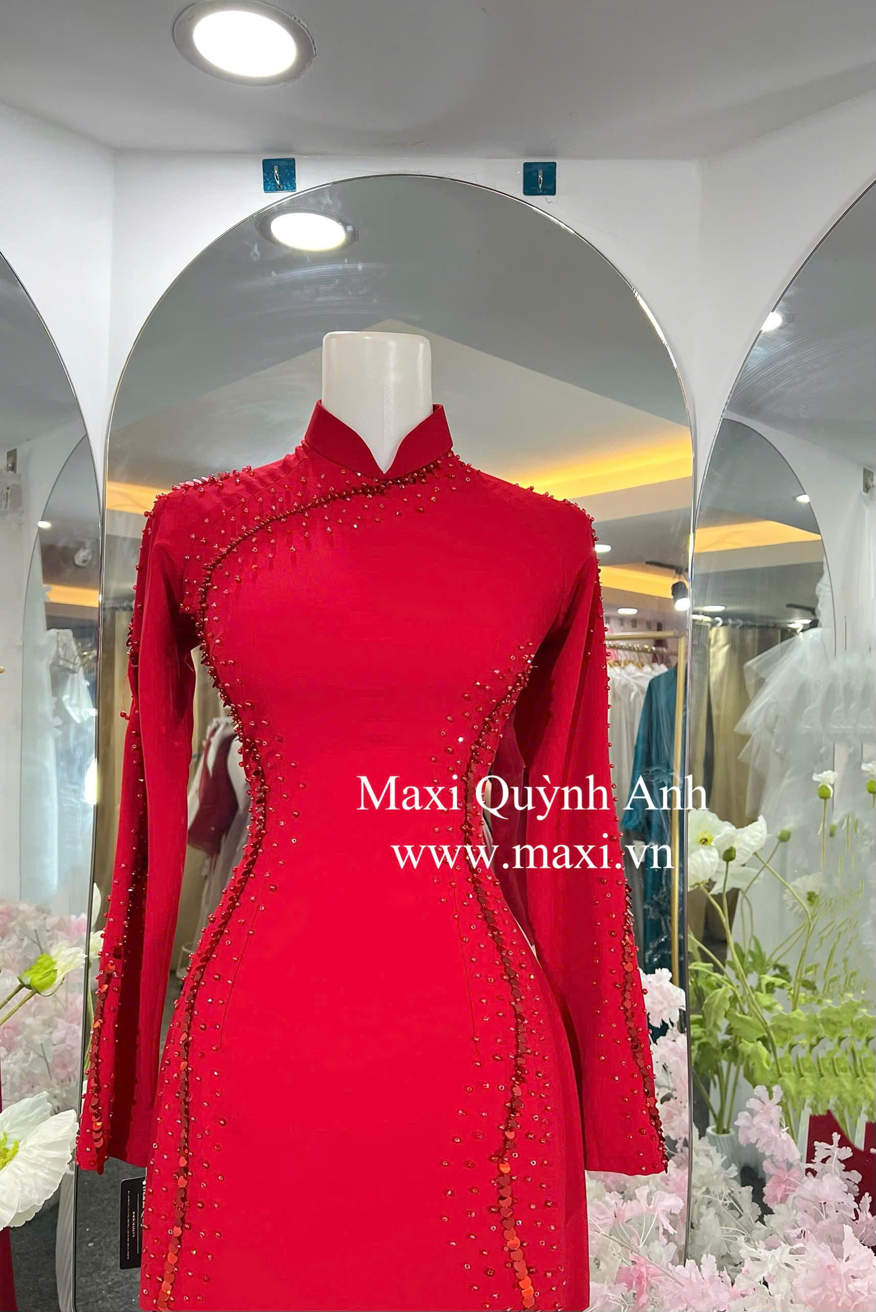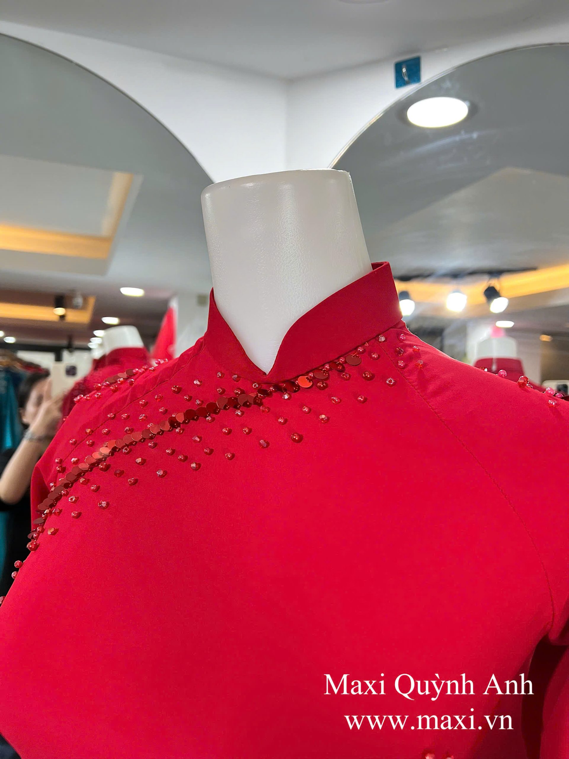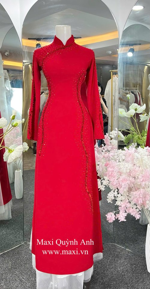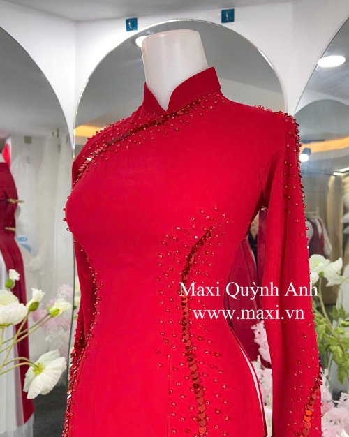 Áo Dài Sui Kim Sa Đỏ