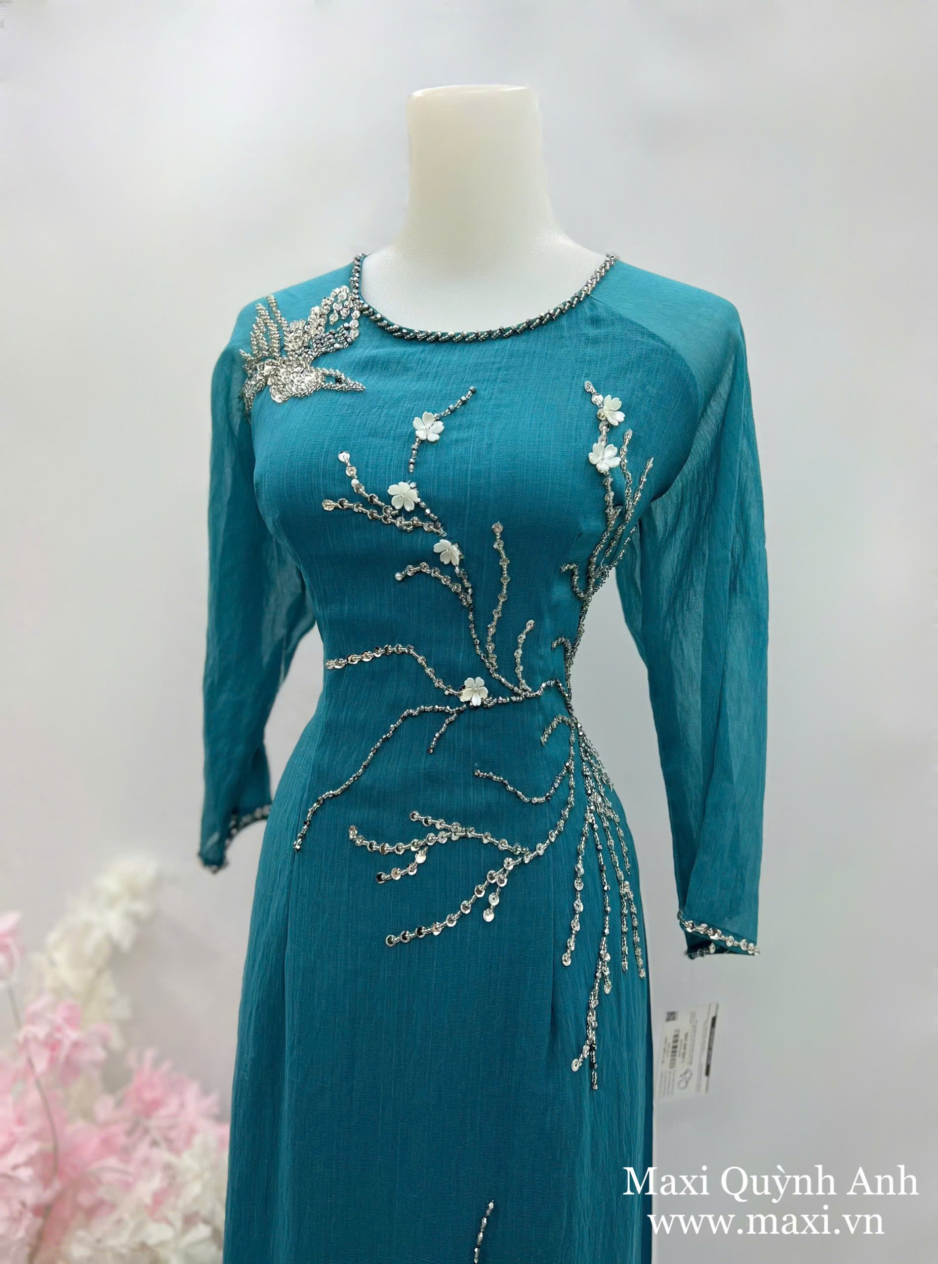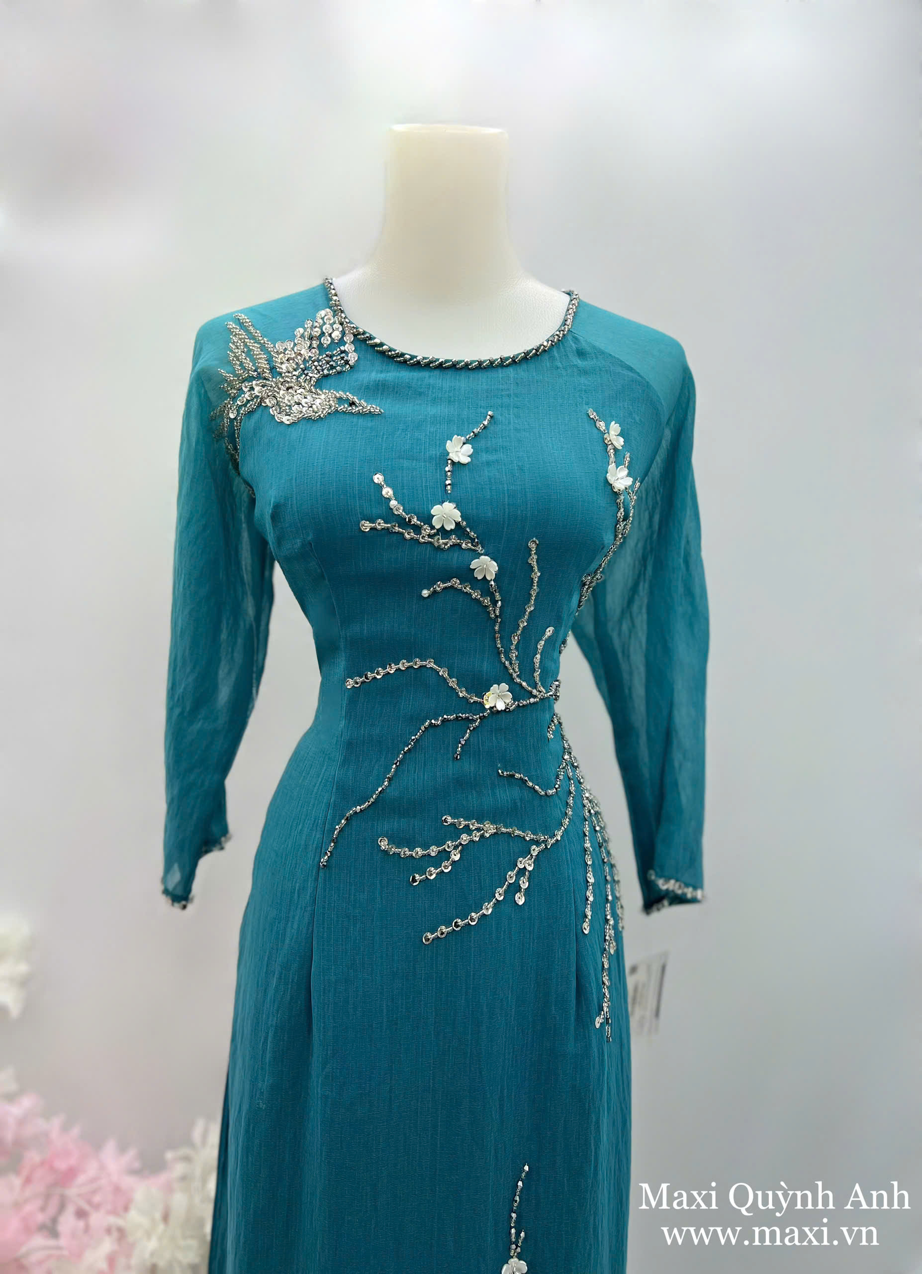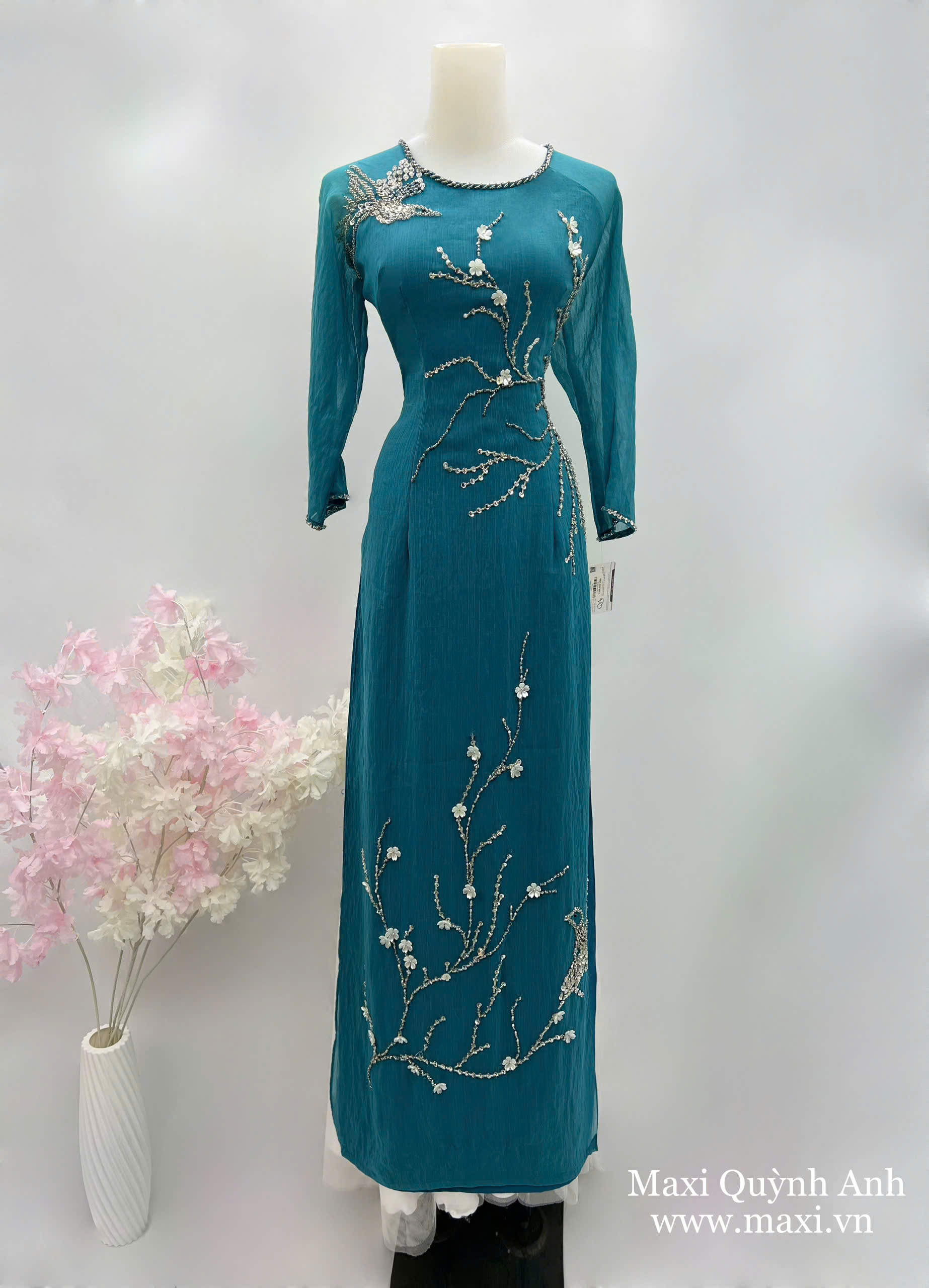 Áo Dài Sui Xanh Tơ Mềm