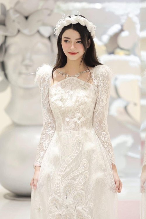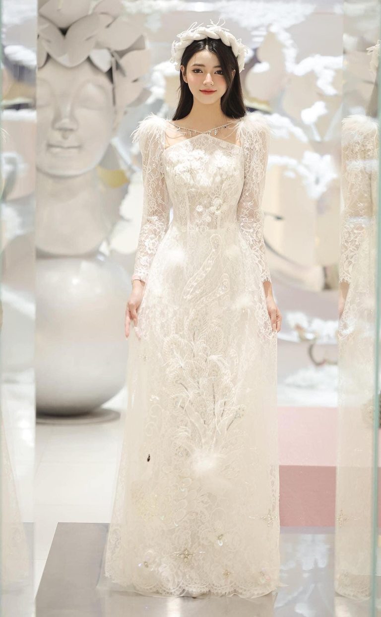 Áo dài trắng hiện đại họa tiết sang trọng “COVER” (ADRTT)