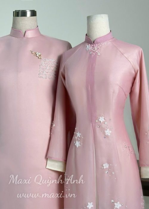 Cặp Áo dài cô dâu chú rể lụa đỏ cao cấp