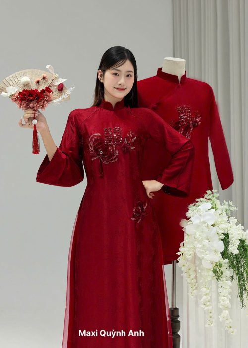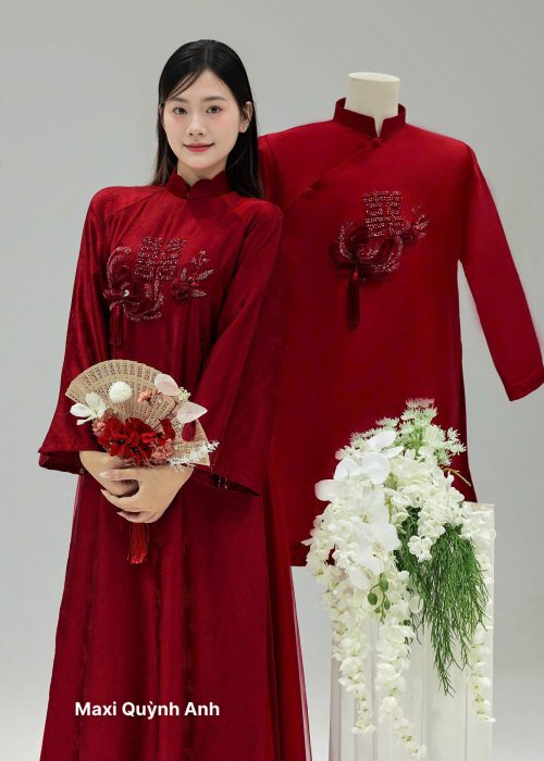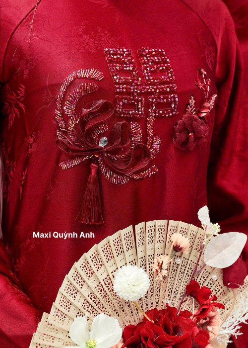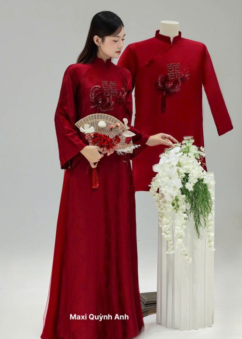 Áo Dài Song Hỷ Nguyện: (Nhấn mạnh họa tiết Song Hỷ và lời nguyện ước trăm năm).