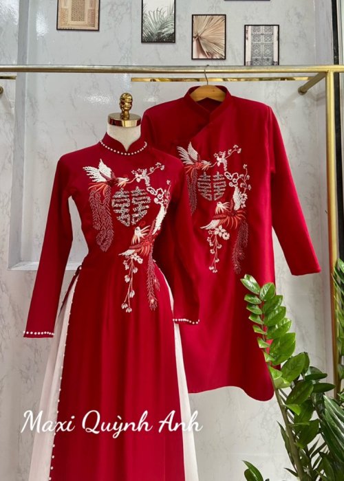 Cặp Áo Dài Cưới Đính Kết Công Phượng Đỏ