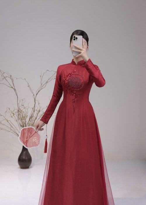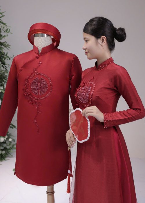 Khoác lên mình bộ áo dài cưới này, cô dâu và chú rể như bước ra từ một bức tranh hoàng gia, nơi vẻ đẹp truyền thống giao thoa hoàn hảo cùng nét tinh tế của thời trang đương đại. Sắc đỏ đô trầm ấm, sang trọng không chỉ tượng trưng cho tình yêu nồng cháy mà còn thể hiện sự đẳng cấp và gu thẩm mỹ tinh tế.