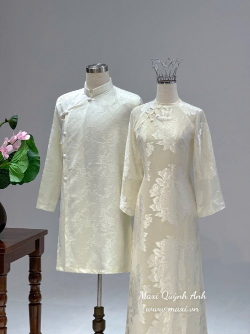 Cặp Áo Dài Cưới Gấm Hoa Tao Nhã