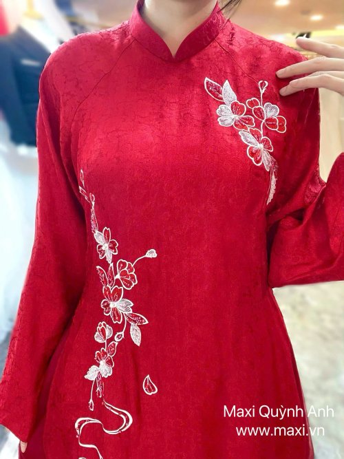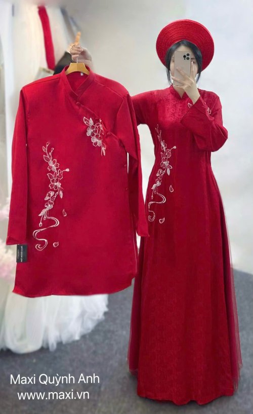 Cặp Áo Dài Cưới Gấm Thêu Cát Tường