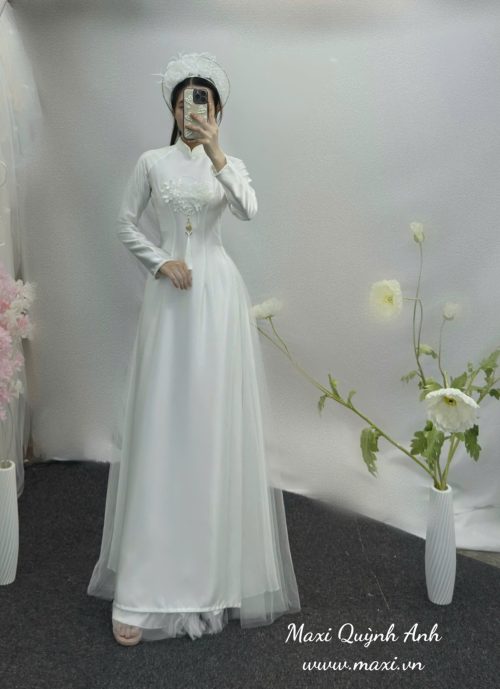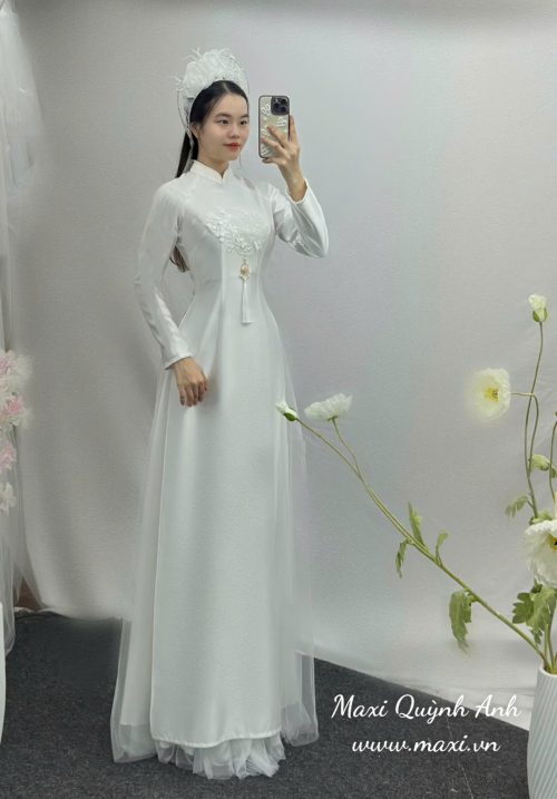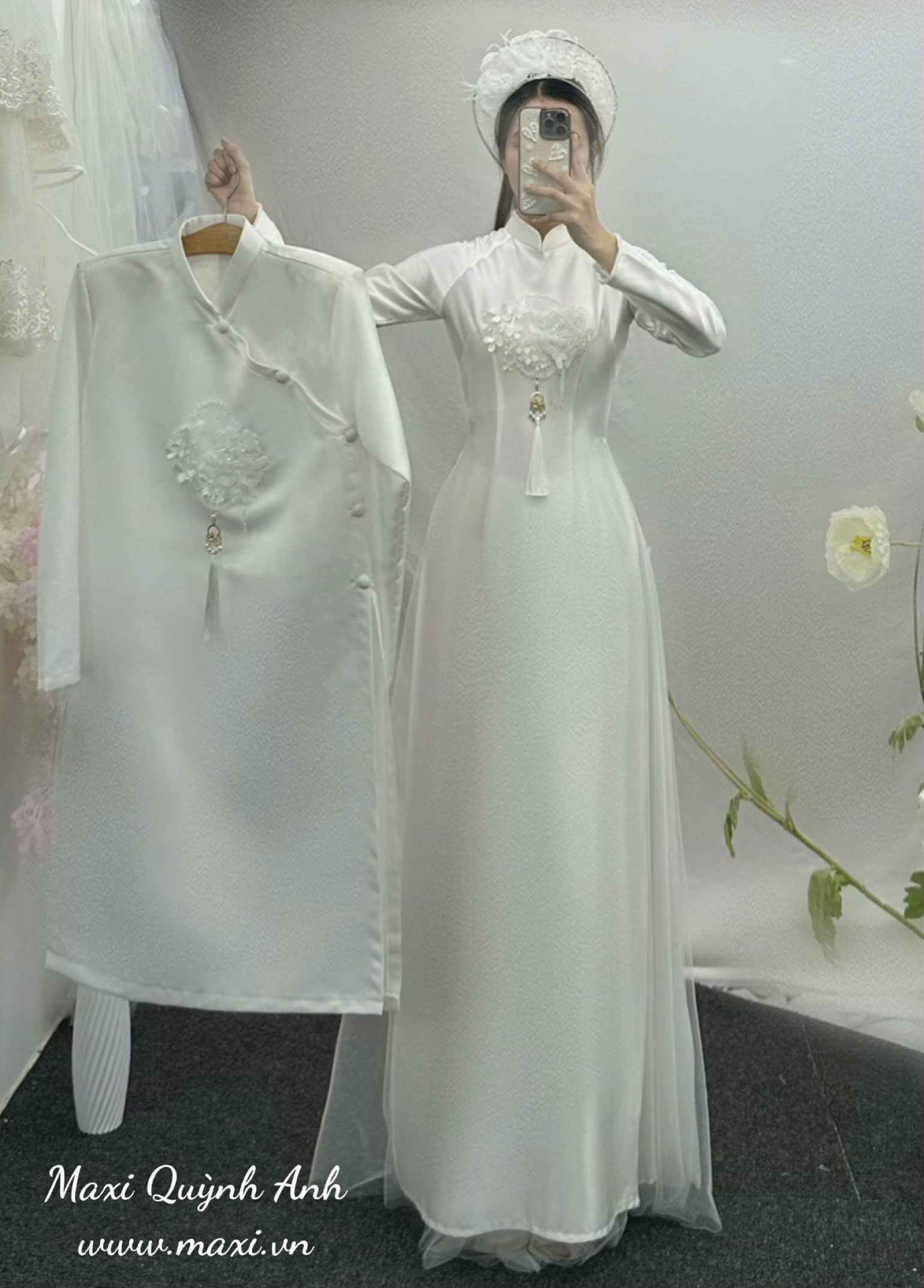 Cặp Áo Dài Cưới Hoa Hỷ Trắng