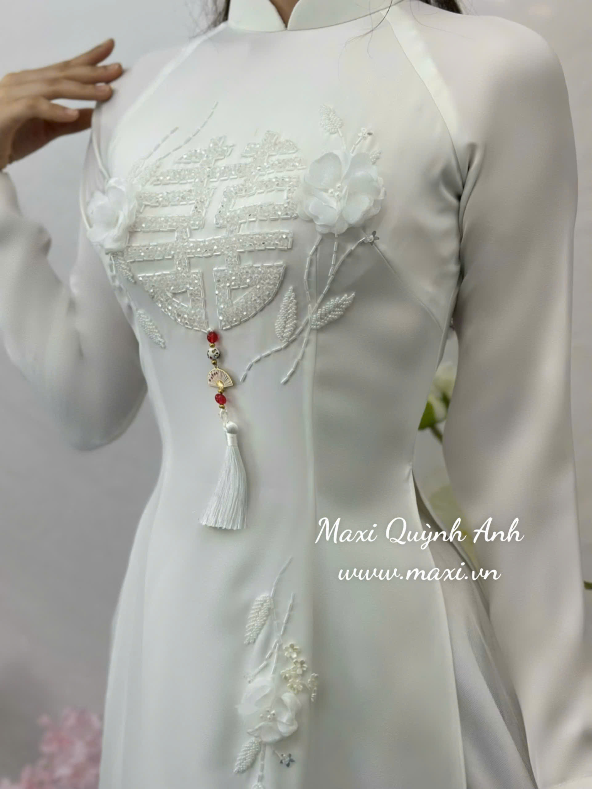 Áo Dài Cưới “Song Hỷ” – Vẹn Tròn Nét Duyên Tinh Khôi