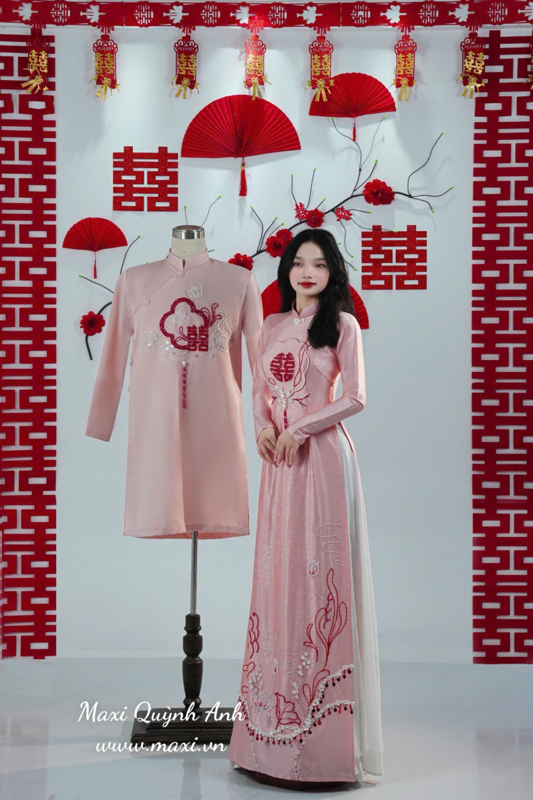 💍 Khoảnh khắc bước vào lễ đường sẽ càng trọn vẹn hơn khi bạn khoác lên mình áo dài cưới cao cấp với sắc hồng ngọt ngào và tinh khôi.