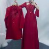 Mang vẻ đẹp hoàng gia, quyền quý, cặp áo dài cưới “Song Hỷ Giao Duyên” là lựa chọn hoàn hảo cho ngày lễ gia tiên trọng thể. Trên nền vải gấm đỏ đô sang trọng, thiết kế là minh chứng cho một tình yêu son sắt, nồng nàn và bền chặt.