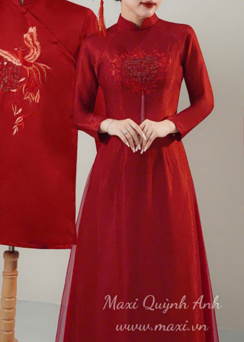 Tuyệt phẩm Áo Dài Cưới “Phượng Hoàng Song Ca” màu đỏ rực rỡ từ Maxi Quỳnh Anh sẽ là lựa chọn hoàn hảo để đôi uyên ương tỏa sáng trong ngày trọng đại. Sắc đỏ nồng ấm tượng trưng cho tình yêu vĩnh cửu và sự may mắn, phú quý.