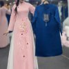 👗 Áo dài nữ được thiết kế với form dáng thướt tha, điểm nhấn là họa tiết thêu tay tinh xảo cùng chiếc khăn đóng đính ngọc trai sang trọng, giúp cô dâu trở nên duyên dáng và nổi bật.