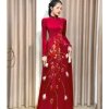 🌸 Sự kết hợp đỏ son quyền lực – thêu trắng tinh tế đã tạo nên một cặp áo dài hoàn hảo, lý tưởng cho ngày ăn hỏi, rước dâu, chụp ảnh cưới.