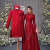 Mang sắc trắng tinh khôi – biểu tượng của sự thuần khiết và khởi đầu mới, cặp áo dài được đính kết hỷ tinh tế trên nền chất liệu cao cấp, tạo điểm nhấn lấp lánh đầy ấn tượng.