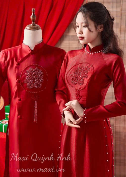 Với sắc đỏ nồng nàn và họa tiết thêu tay tỉ mỉ, đây chắc chắn là lựa chọn hoàn hảo cho các cặp đôi trong dịp lễ, Tết hoặc ngày cưới hỏi.