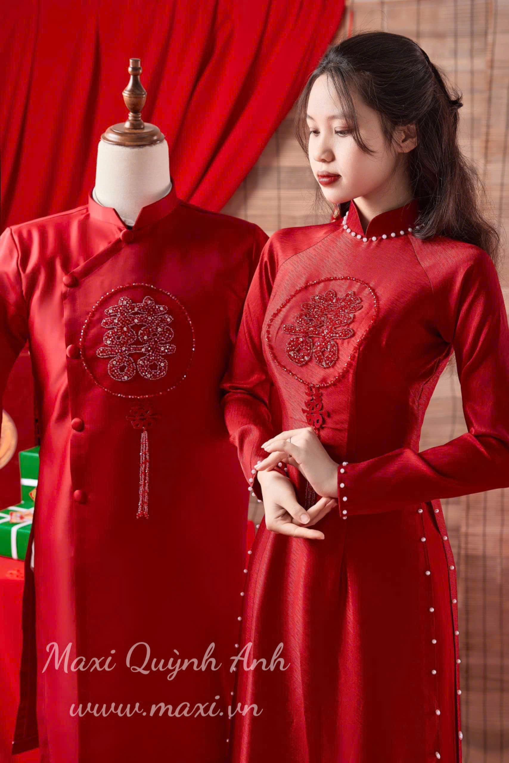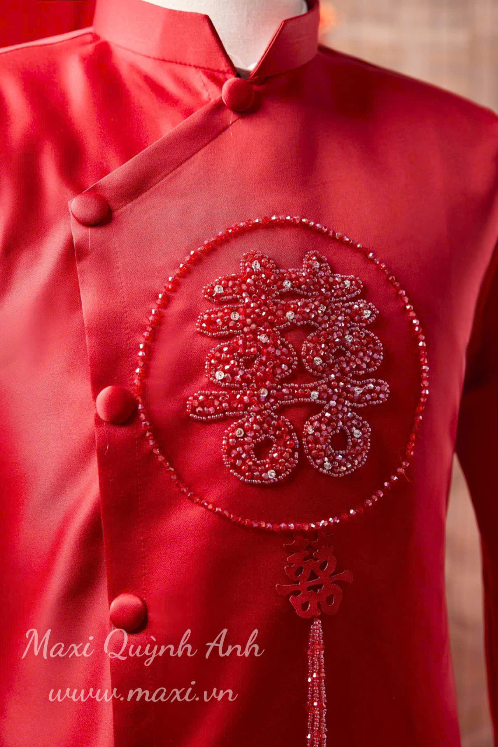 Với sắc đỏ nồng nàn và họa tiết thêu tay tỉ mỉ, đây chắc chắn là lựa chọn hoàn hảo cho các cặp đôi trong dịp lễ, Tết hoặc ngày cưới hỏi.