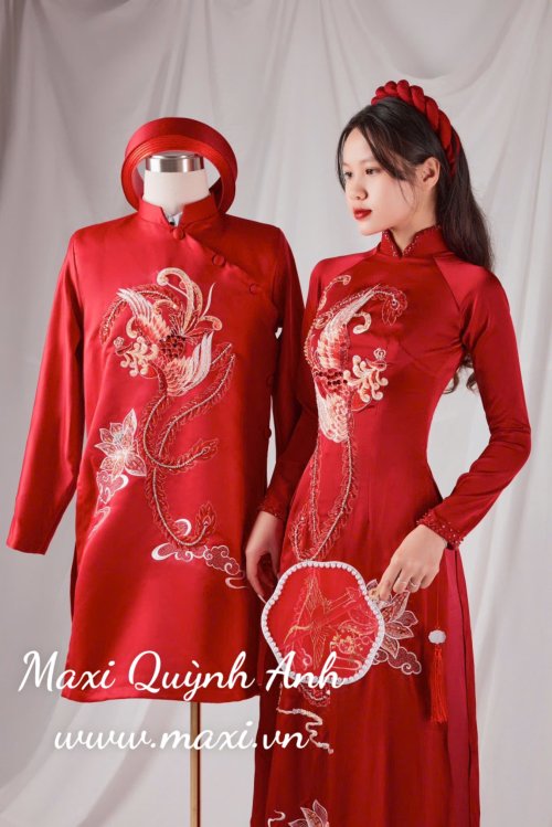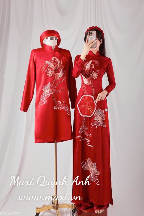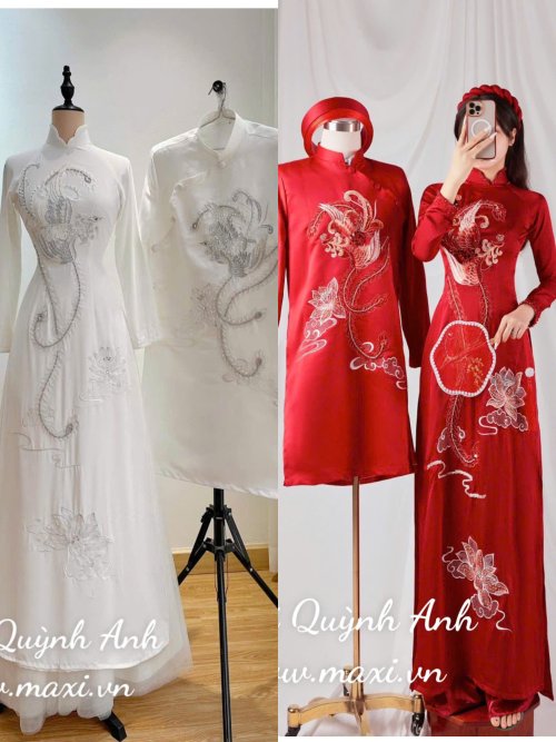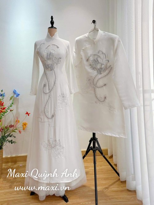 Cặp Áo Dài Cưới Khổng Tước Hoa Sen