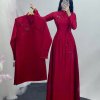 Áo dài cặp này là một sự kết hợp hài hòa giữa hiện đại và truyền thống, lộng lẫy và trang trọng. Áo của cô dâu bay bổng, quyến rũ với các chi tiết đính kết tỉ mỉ, trong khi áo của chú rể lại vững chãi, uy nghi với họa tiết rồng thêu tinh xảo. Cả hai tạo nên một tổng thể đồng điệu, hoàn hảo cho ngày cưới, thể hiện gu thẩm mỹ tinh tế của đôi uyên ương.
