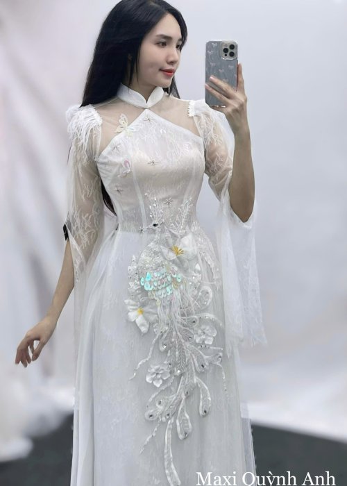 [ ÁO DÀI CƯỚI LONG PHỤNG REN THÊU ]