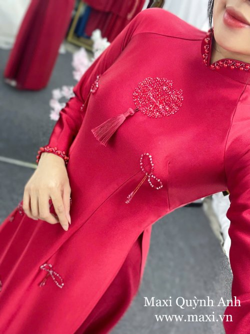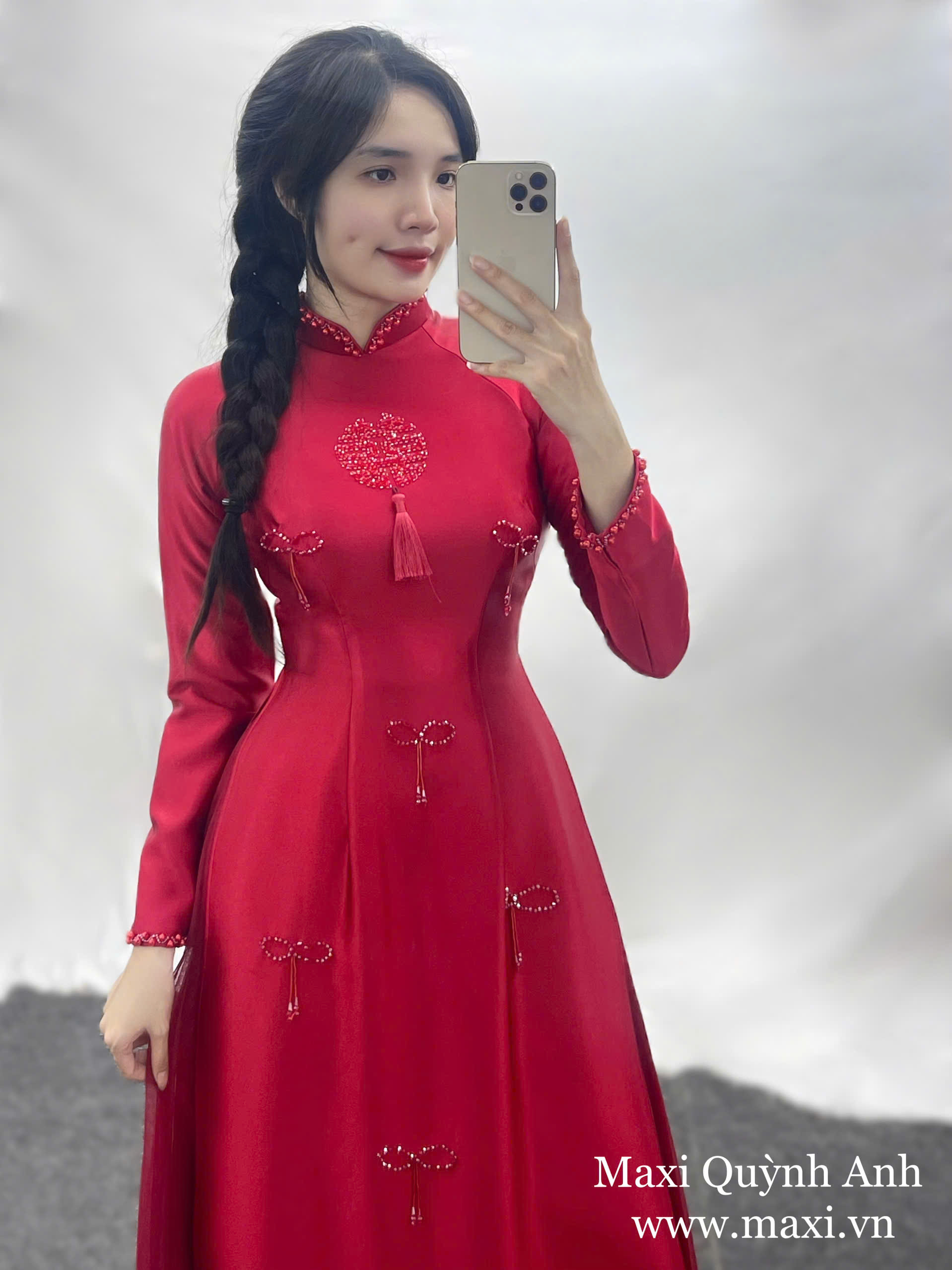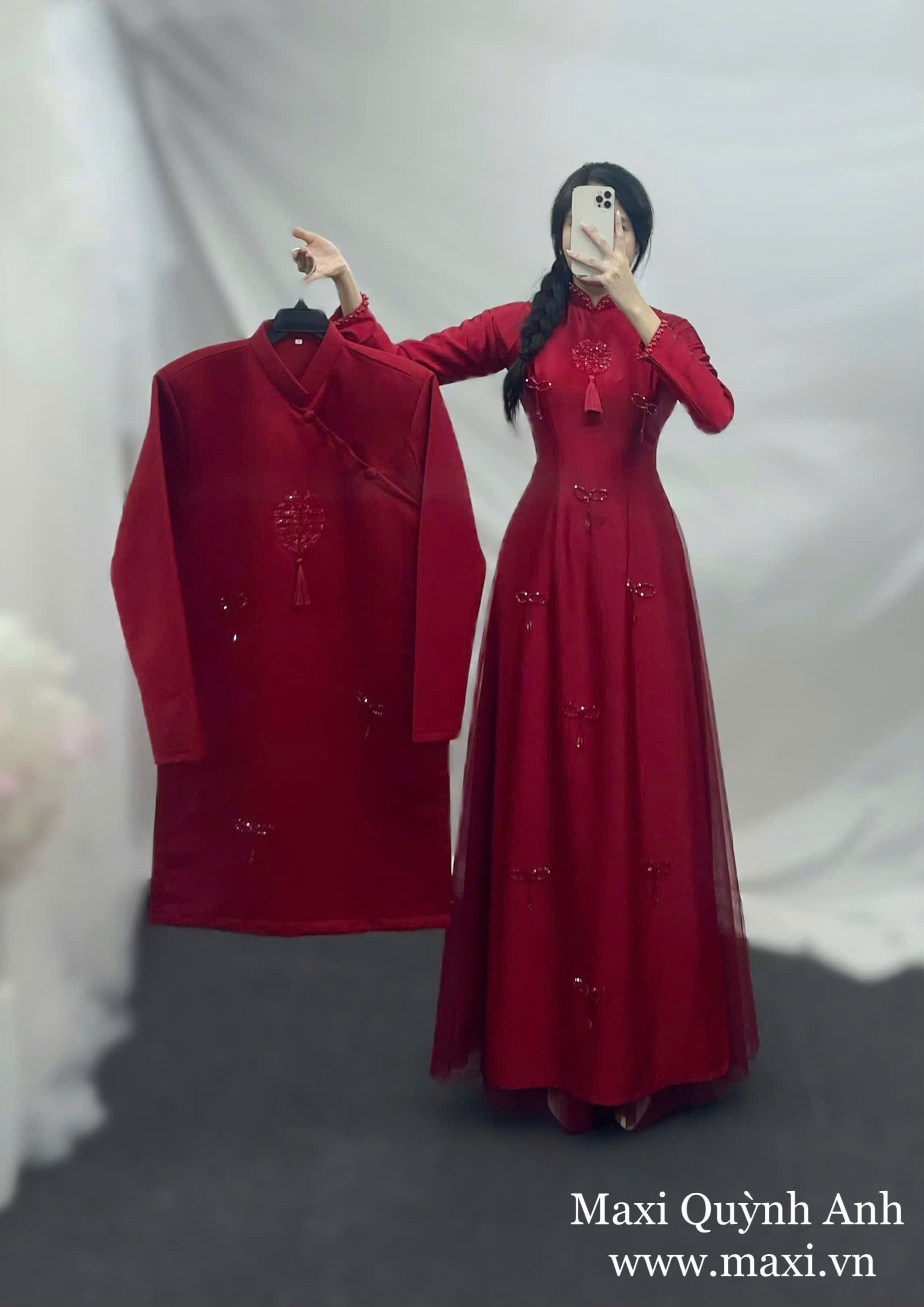 Cặp Áo Dài Cưới Nơ Hồng Quy