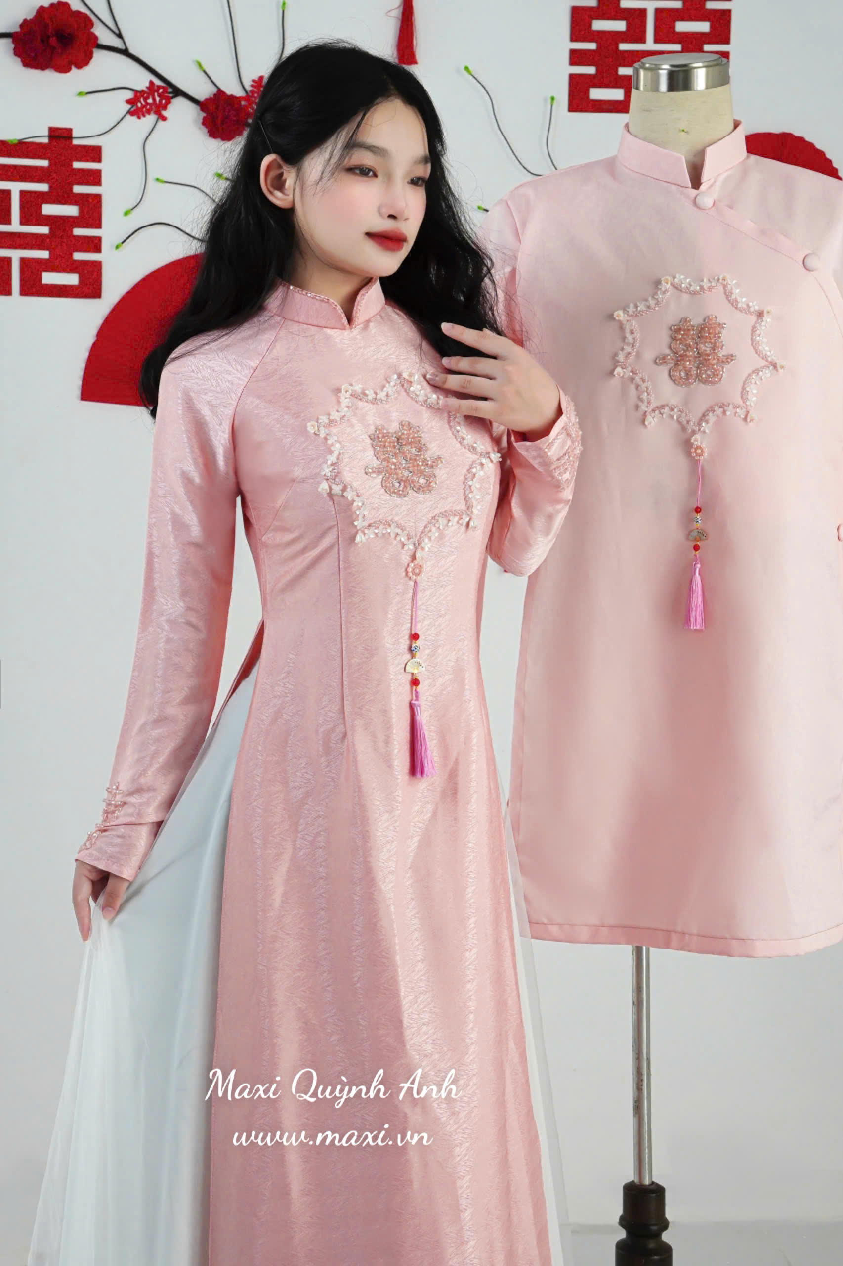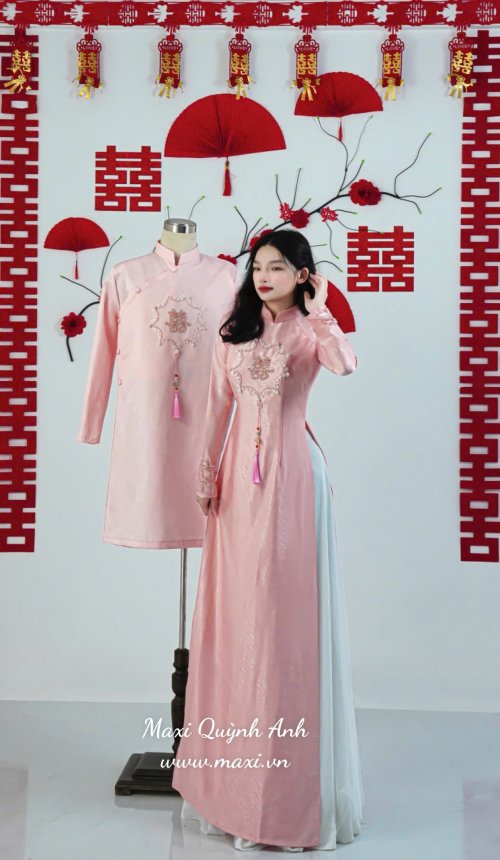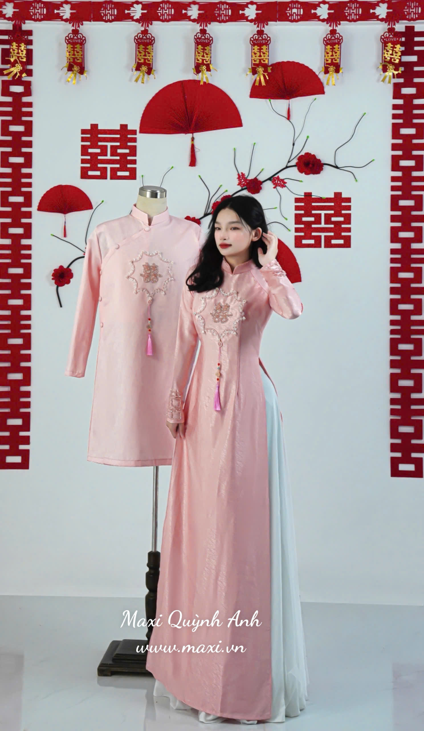 Cặp Áo Dài Cưới Thanh Hỷ Hồng