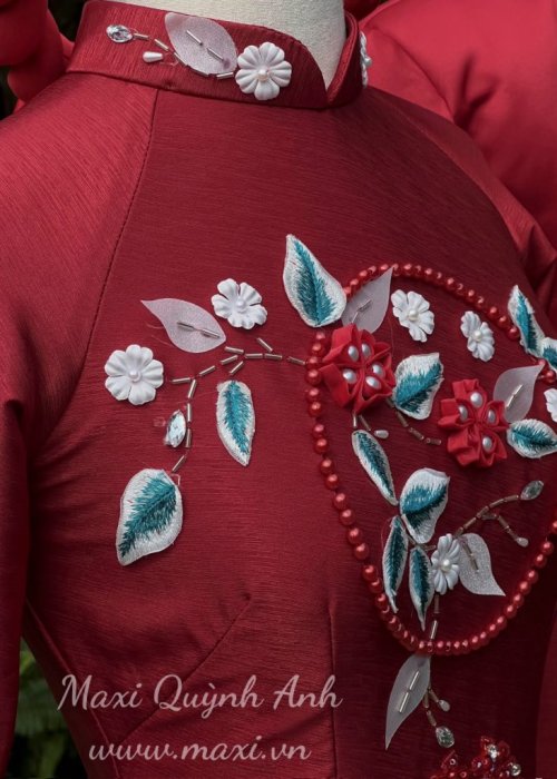 Cặp áo dài cưới thêu hoa kết hỉ sang trọng