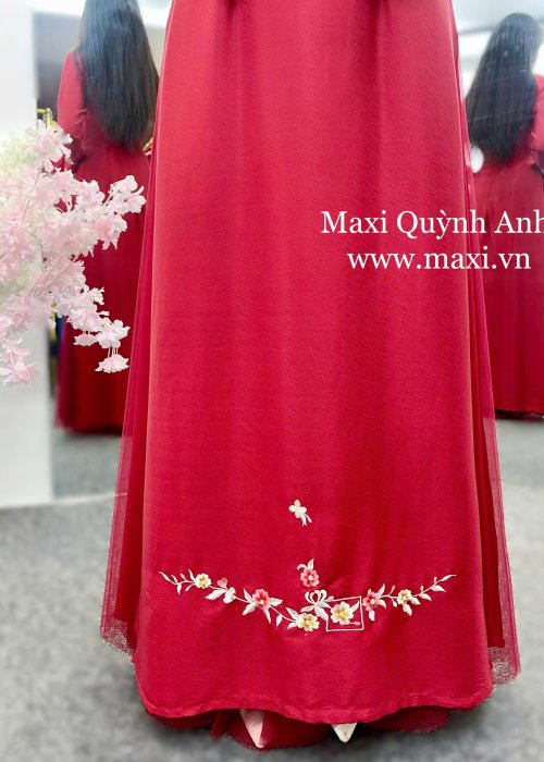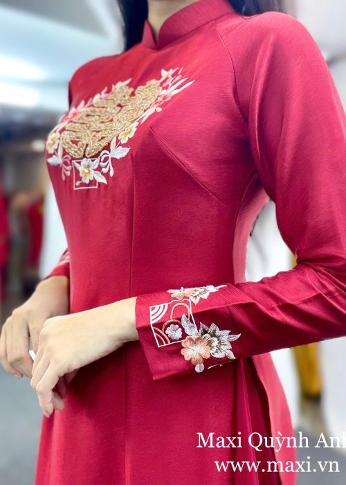 Cặp áo dài này mang vẻ đẹp tinh tế và sang trọng với gam đỏ nổi bật, vừa rực rỡ vừa tượng trưng cho sự hạnh phúc, may mắn và viên mãn trong ngày trọng đại. Áo dài nữ được thiết kế dáng ôm khéo léo, tôn lên vòng eo thon gọn và đường cong mềm mại, tà áo buông dài nhẹ nhàng tạo sự uyển chuyển trong từng bước đi. Trước ngực áo được điểm xuyết bằng họa tiết thêu vàng nổi bật, kết hợp cùng hoa văn thêu, mang đến sự cân đối và cuốn hút, giúp tổng thể thêm phần lộng lẫy và quý phái.