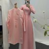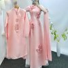 👗 Áo dài nữ nổi bật với gam hồng pastel nhẹ nhàng, điểm nhấn là họa tiết chim công thêu tay tinh xảo chạy dọc thân áo, cùng những đường đính kết lấp lánh giúp tôn lên sự duyên dáng, kiêu sa cho cô dâu. Phần tay voan mềm mại tạo nét bay bổng, nữ tính và cực kỳ thanh thoát.