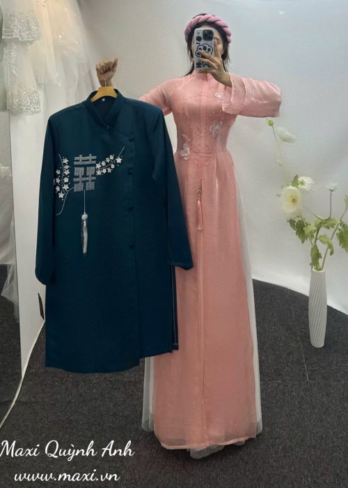 🌸 Sự kết hợp hài hòa giữa hồng ngọt ngào và xanh quyền lực mang đến hình ảnh cặp đôi hoàn hảo – vừa lãng mạn vừa trang trọng. Đây chắc chắn là lựa chọn tuyệt vời cho lễ ăn hỏi, đám cưới hoặc chụp ảnh kỷ niệm.